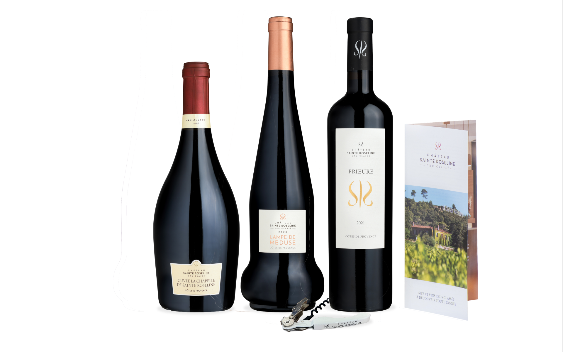 Lampe de Méduse, cuvée iconique et historique de la maison, Chapelle de Sainte Roseline, cuvée d'exception du Château et Prieure, un hommage à Sainte Roseline, la Mère Prieure de l'abbaye entre les 13ème et 14ème siècles : Découvrez les trois rosés crus classés du Château Sainte Roseline.